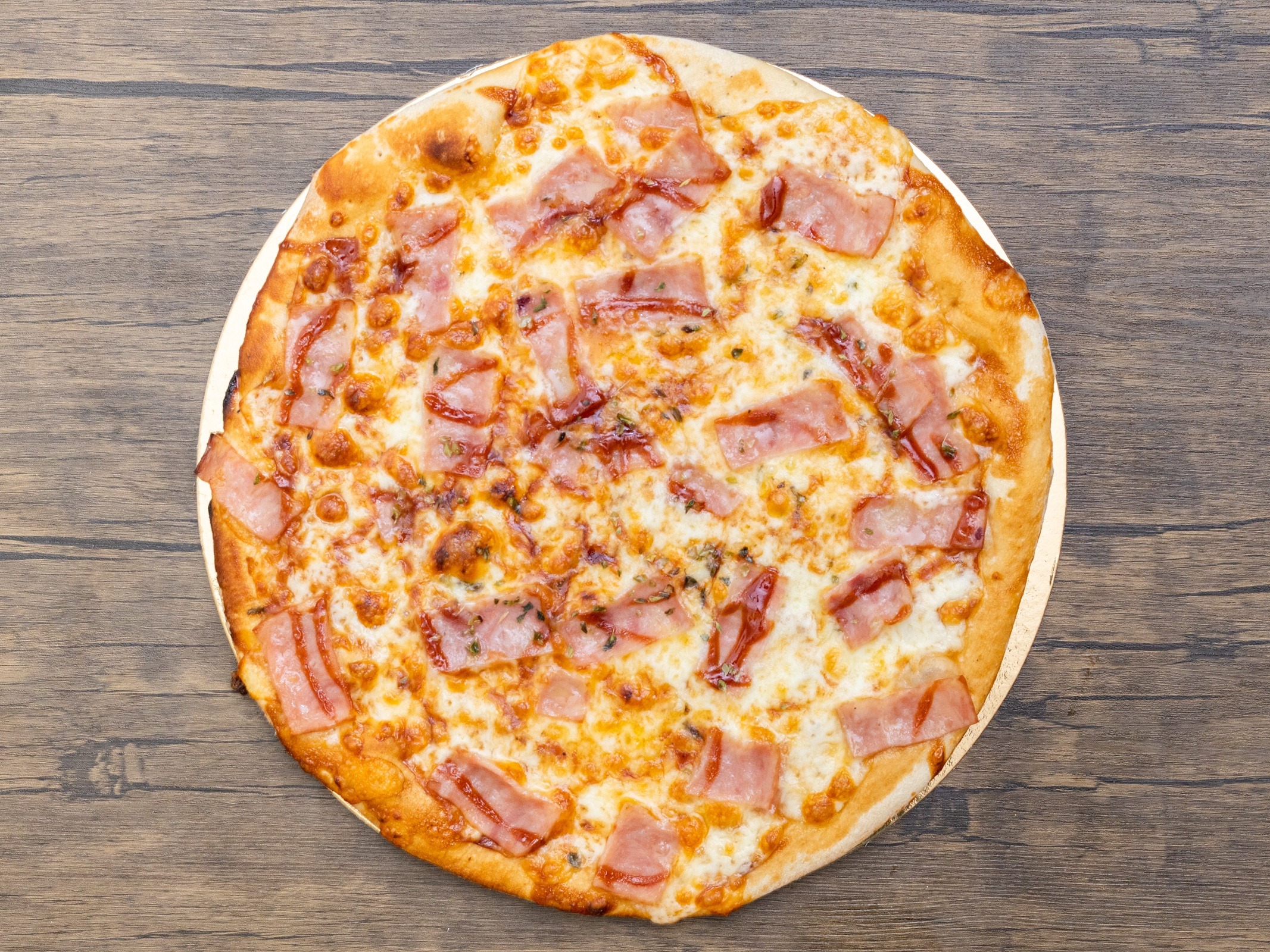 Salsa BBQ salsa base, bacón, mozzarella y orégano